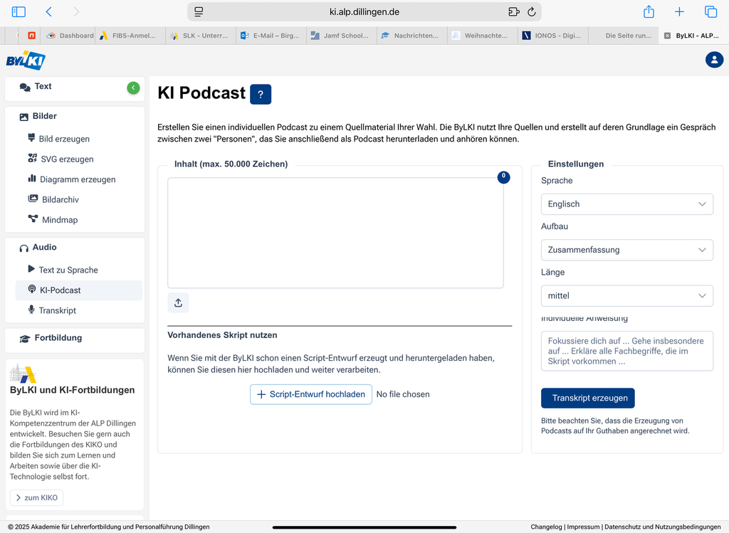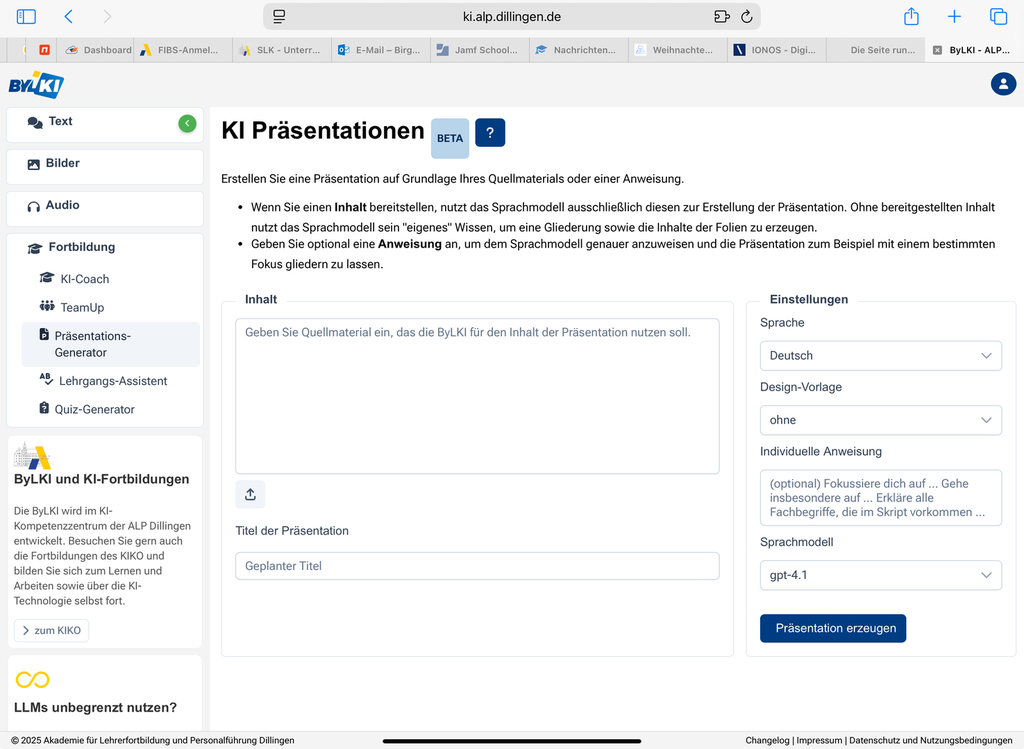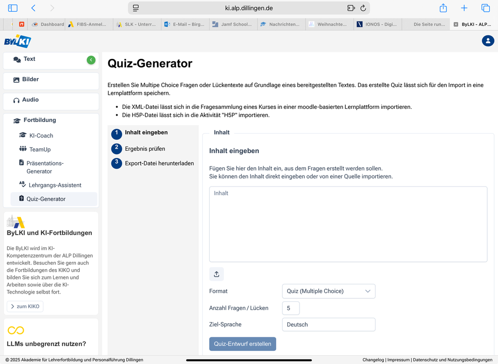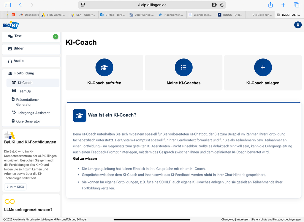 die ByLKI als an der ALP Dillingen entwickeltes, auf KI-Technologie basiertes Fortbildungswerkzeug zielgerichtet anwenden."