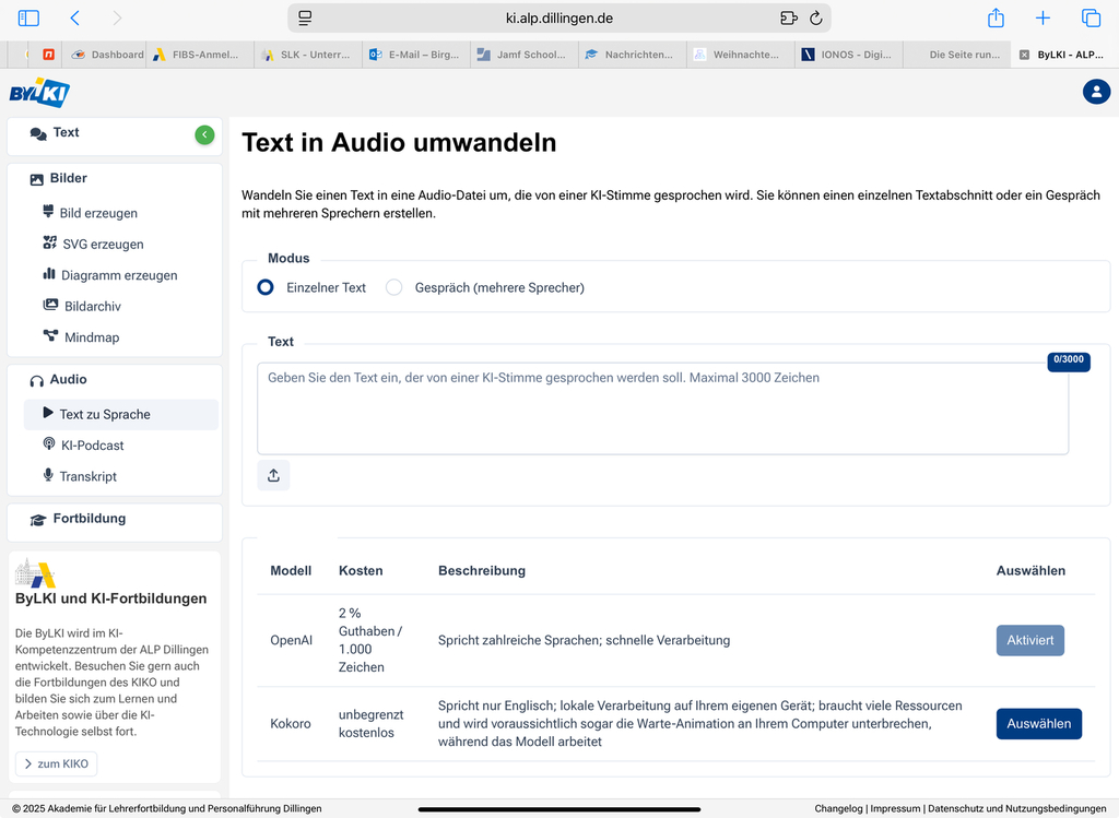Bayern bietet mit ByLKI https://ki.alp.dillingen.de/ seinen Lehrkräften den datenschutzkonformen und kostenfreien Zugang zu verschiedenen LLM an.