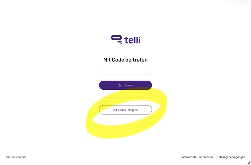 2. Gehen Sie auf https://telli.schule/ und klicken Sie auf "Mit VIDIS einloggen".
