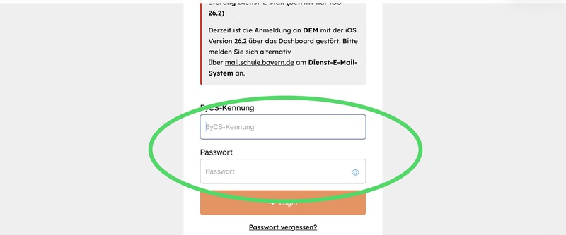 4. Sie gelangen zu Ihrem BYCS-Login. Geben Sie dort Ihre Kennung und Ihr Passwort ein.
