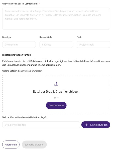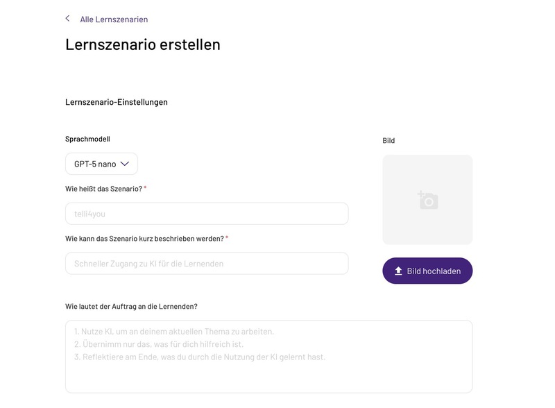 Vorteil: du kannst das Szenario teilen, damit Schüler anonym und datenschutzkonform direkt mit der KI arbeiten, ohne sich einloggen zu müssen.