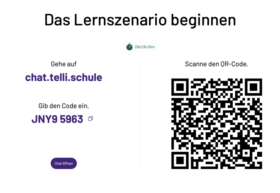 telli funktioniert vollständig im Browser, eine Installation ist nicht notwendig. Der Zugang erfolgt über einen von der Lehrkraft bereitgestellten Link (s. Bild), sodass der Einsatz direkt im Unterricht möglich ist. Besonders für jüngere Schülerinnen und Schüler bietet telli einen sicheren und leicht verständlichen Zugang zu KI und eignet sich gut zur Vermittlung grundlegender KI-Kompetenzen. Die Anwendung telli wird gerade noch viel optimiert und zusätzliche Funktionen wie z. B. Vorlesen sollen integriert werden.